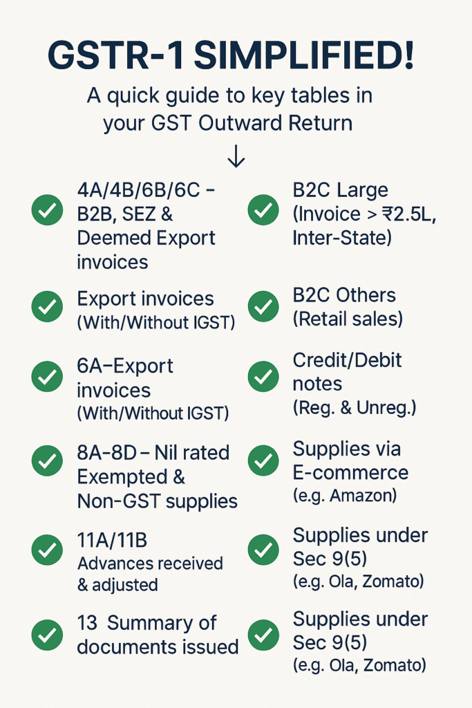 The GSTR-1 is a monthly or quarterly return that every registered GST taxpayer (except for a few exempt categories) must file to report outward supplies (sales) of goods or services. It plays a crucial role in the auto-population of GSTR-2A/2B for recipients and for determining tax liability.