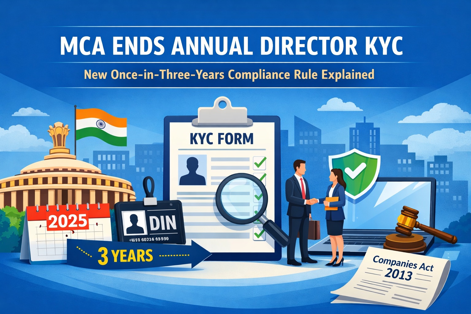 As part of the Azadi ka Amrit Mahotsav vision of simplifying compliance and improving ease of doing business in India, the Ministry of Corporate Affairs (MCA) has taken a significant regulatory step: phasing out annual KYC requirements for company directors under the Companies Act, 2013 and replacing them with a streamlined triennial model. (Press Information Bureau)